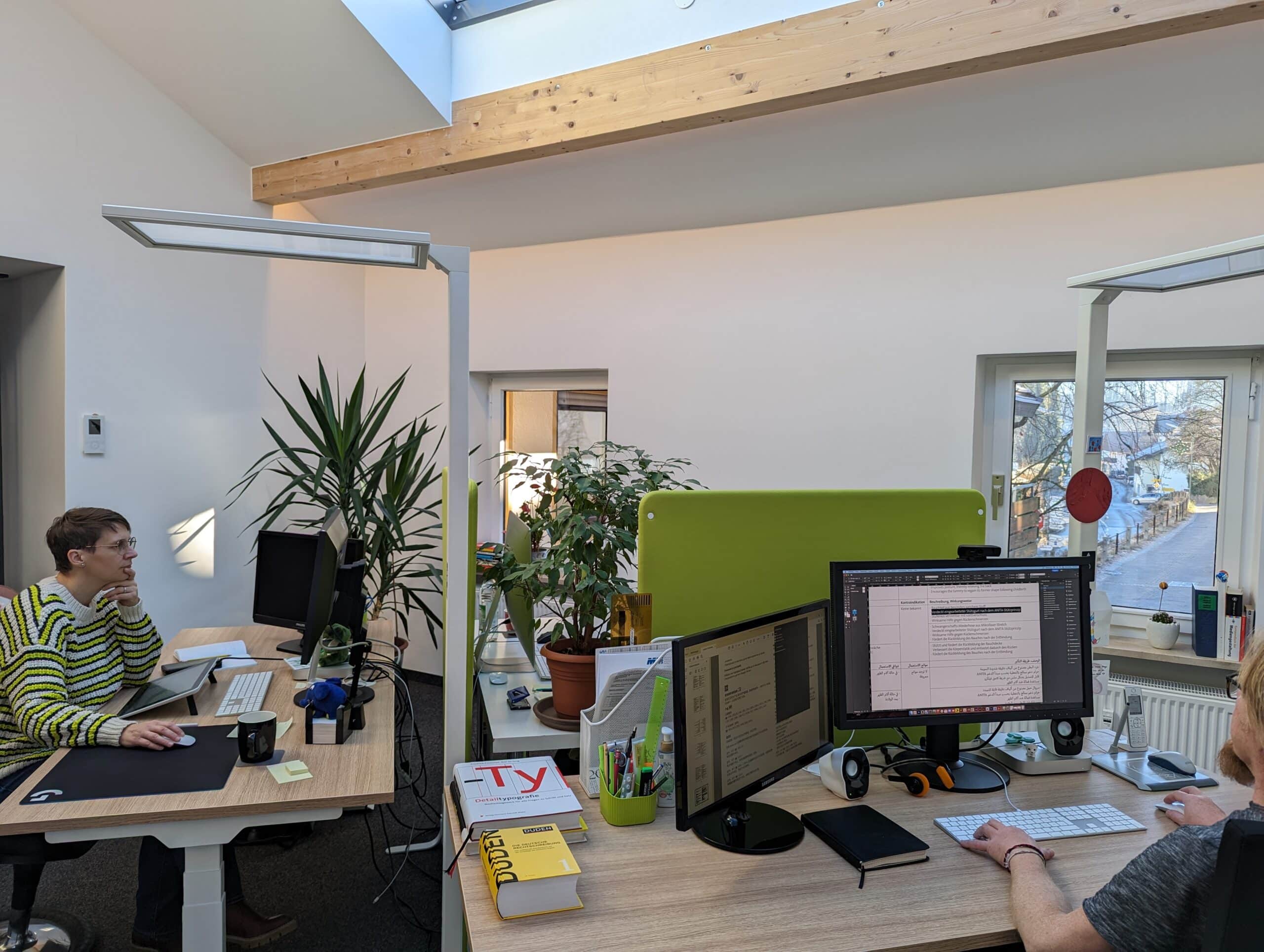 Immer wieder haben wir auch Praktikanten im Haus. Sie lernen hier etwas über Grafikdesign, wenn sie nicht in der Fachoberschule für Gestaltung Anwesenheitspflicht haben. Praktikanten helfen uns, wo immer es für sie machbar ist. Feine Sache!